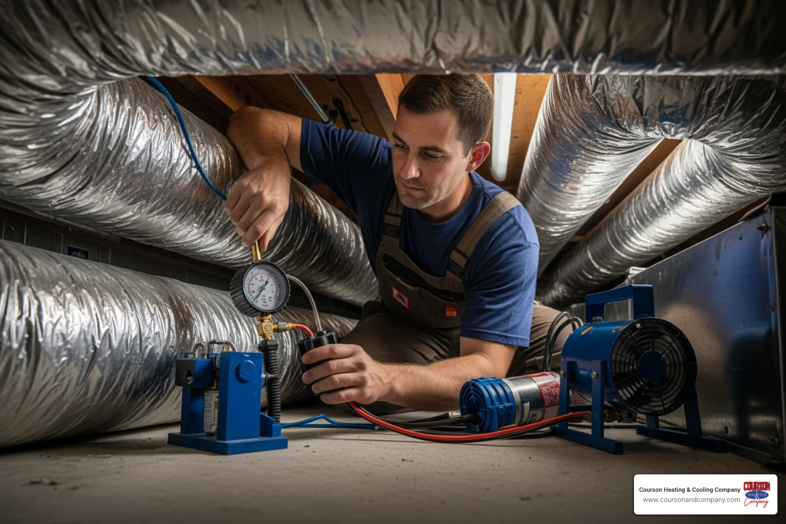 When you call Courson & Company for duct leak testing Brandon FL, our certified technicians follow a thorough, scientific process to find every hidden inefficiency in your HVAC system.